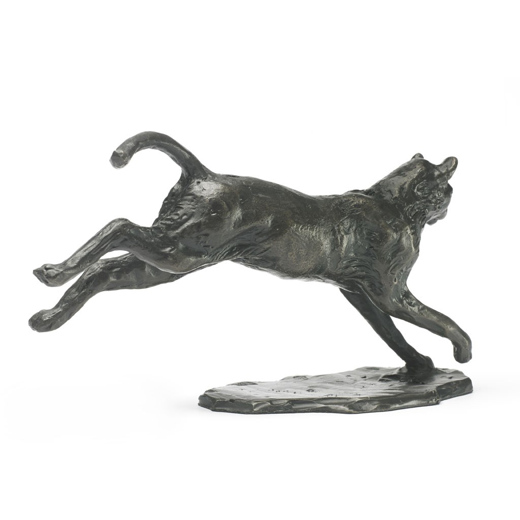 This Sue Maclaurin solid bronze sculpture of a Bounding Cat is a foundry casting by Nelson & Forbes of her original sculpture.