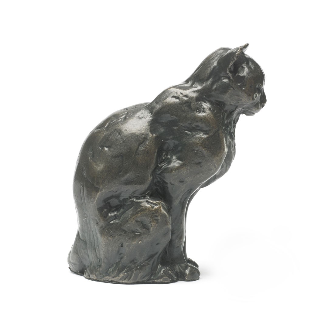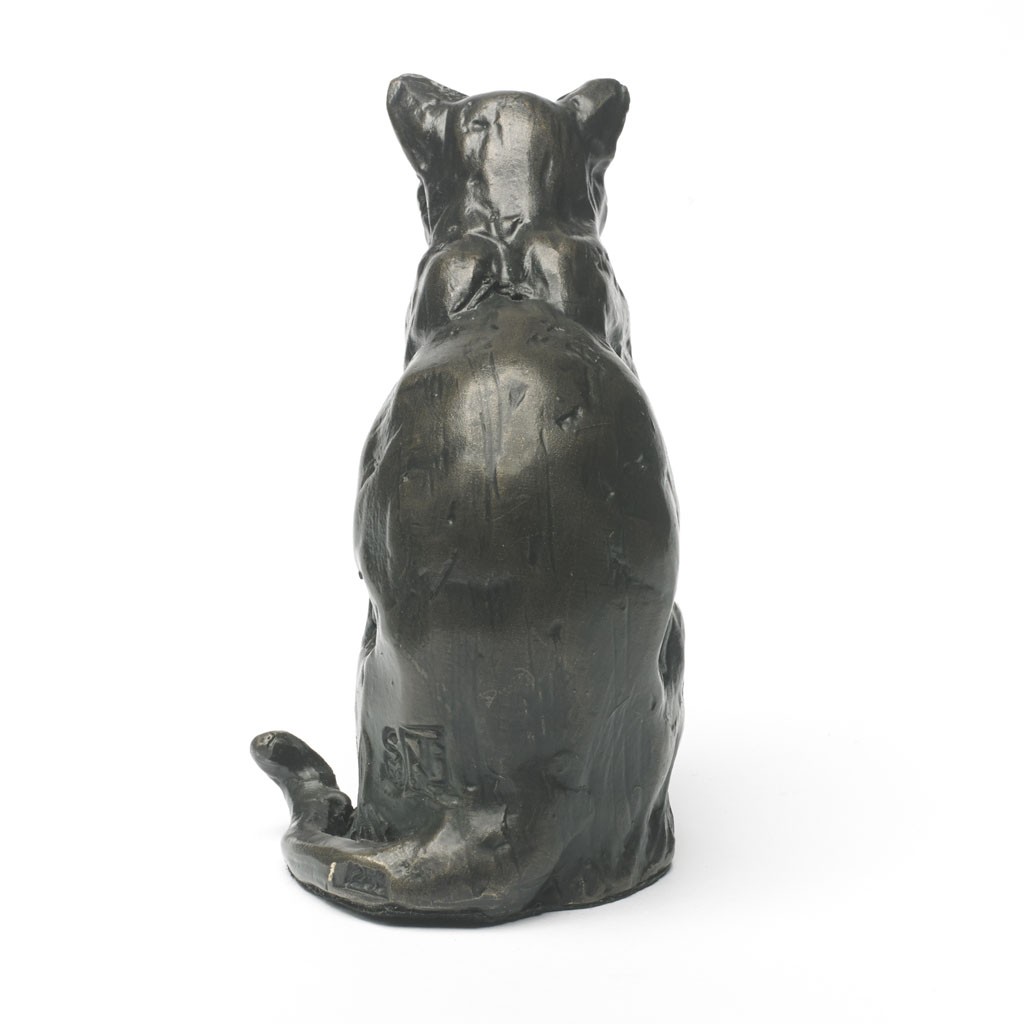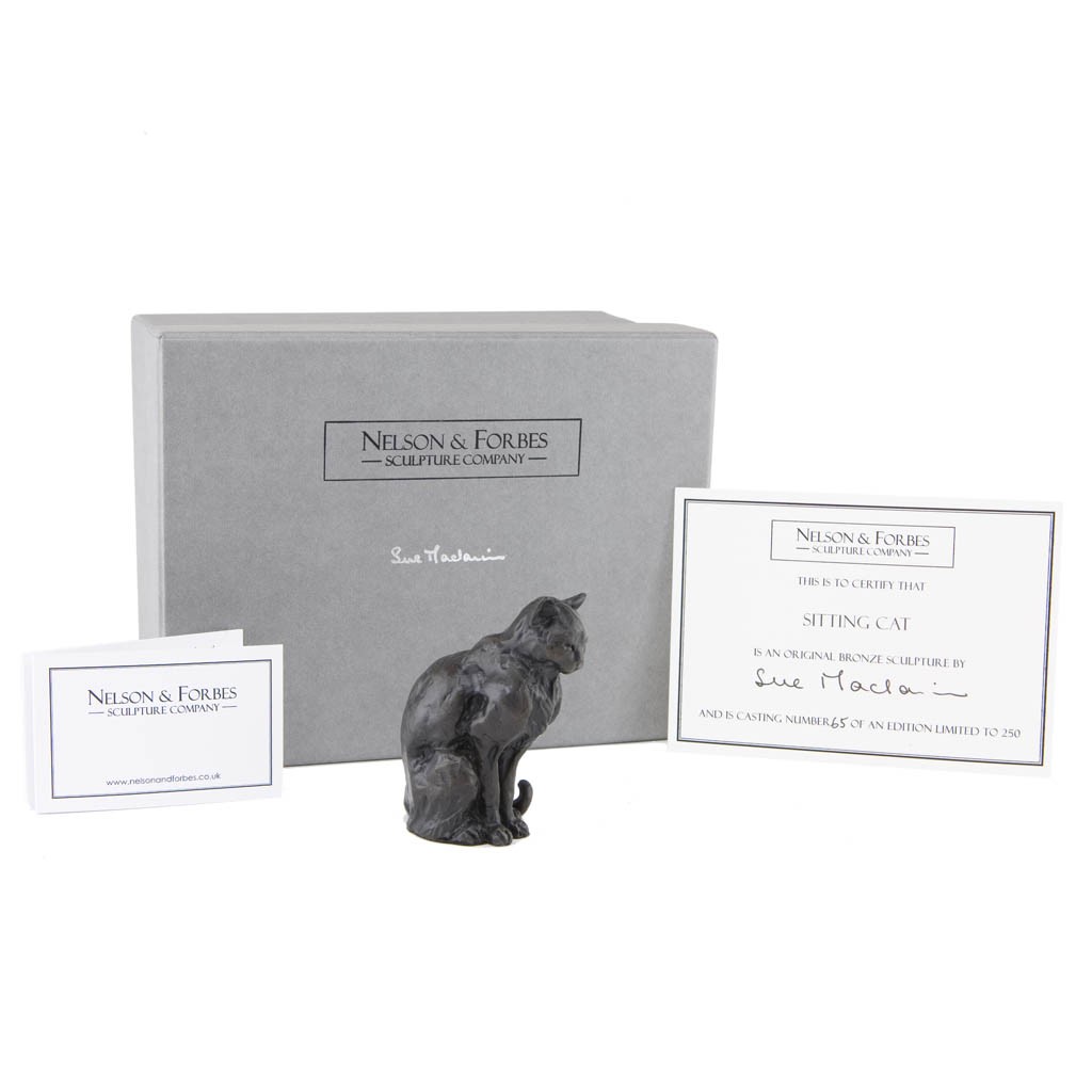 This Sue Maclaurin solid bronze sculpture of a Sitting Cat is a foundry casting by Nelson & Forbes of her original sculpture.