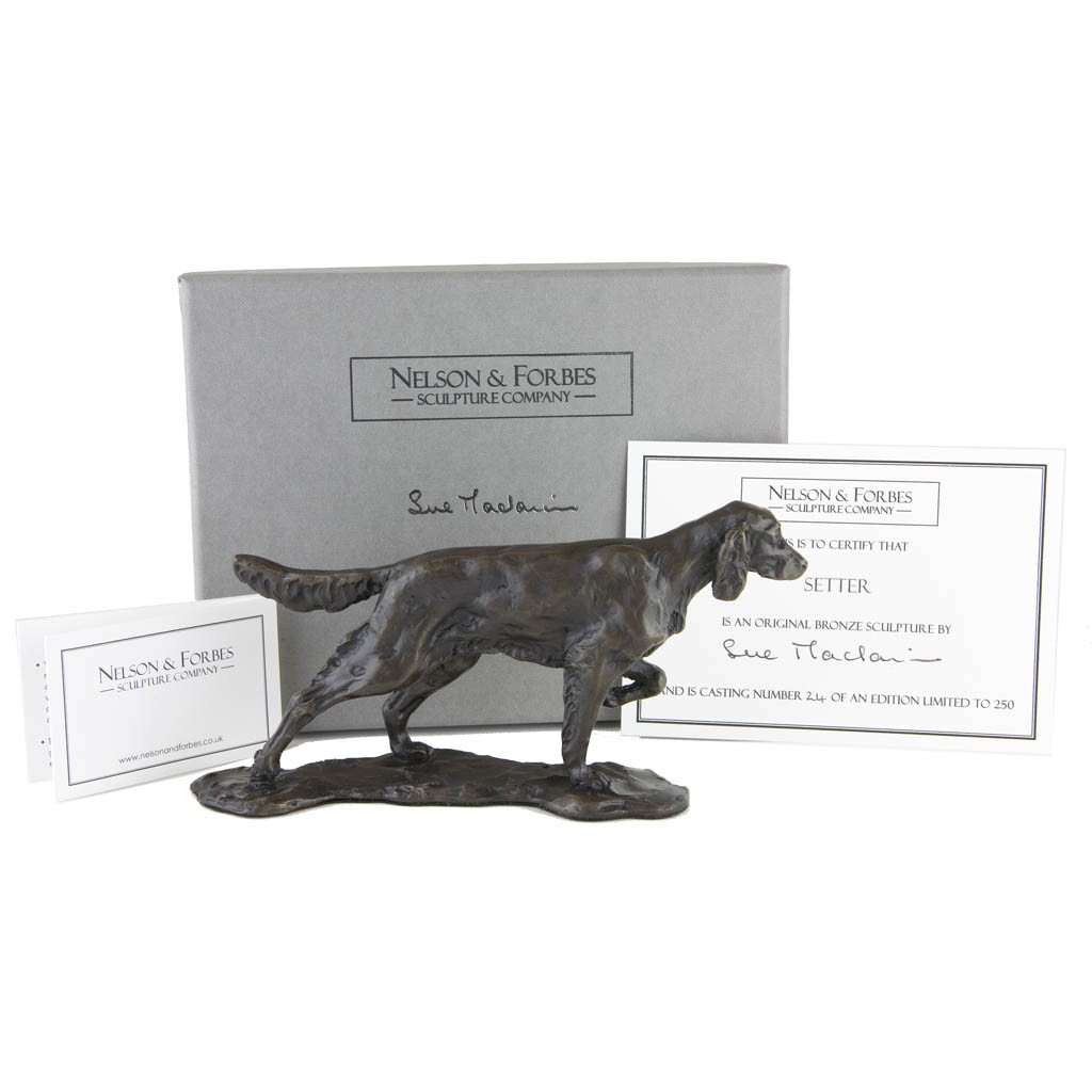 We hand cast this Setter sculpture in solid bronze in our British foundry using the traditional and lengthy lost wax process…. this is NOT made of resin!   It is cast as a strictly limited edition of just 250 castings worldwide and arrives beautifully gift boxed with an artist signed and individually numbered certificate of authenticity.