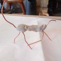 The wax model with attached rods is now covered in ceramic material which will form the mould for the final bronze pour. This is done by dipping the wax model carefully into investment liquid and then covering it in a fine powder before allowing it to cure (completely dry). The model is then dipped into investment liquid again and given a coating of a coarse ceramic powder. By following this procedure several times, a ceramic shell is built up around the wax model.