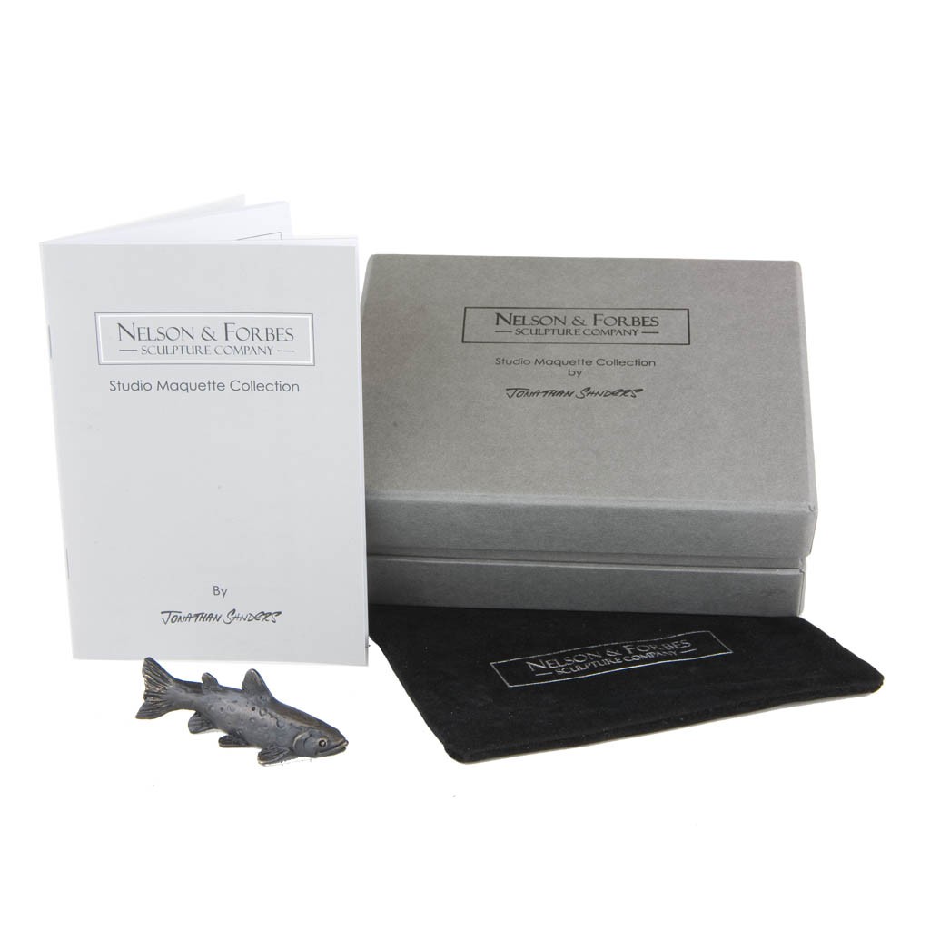 This Jonathan Sanders bronze sculpture, 'Brown Trout Maquette' was cast by hand in a British foundry by Nelson & Forbes, as limited edition of just 500 castings.  It is part of the Nelson & Forbes ‘Studio Maquette Collection’, which was launched in 2015 following requests by collectors for miniature sculptures that would make ideal gifts.
