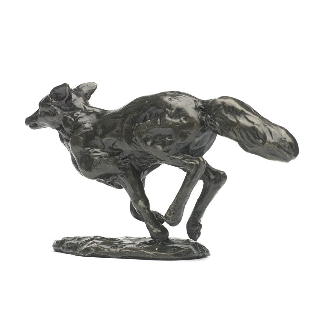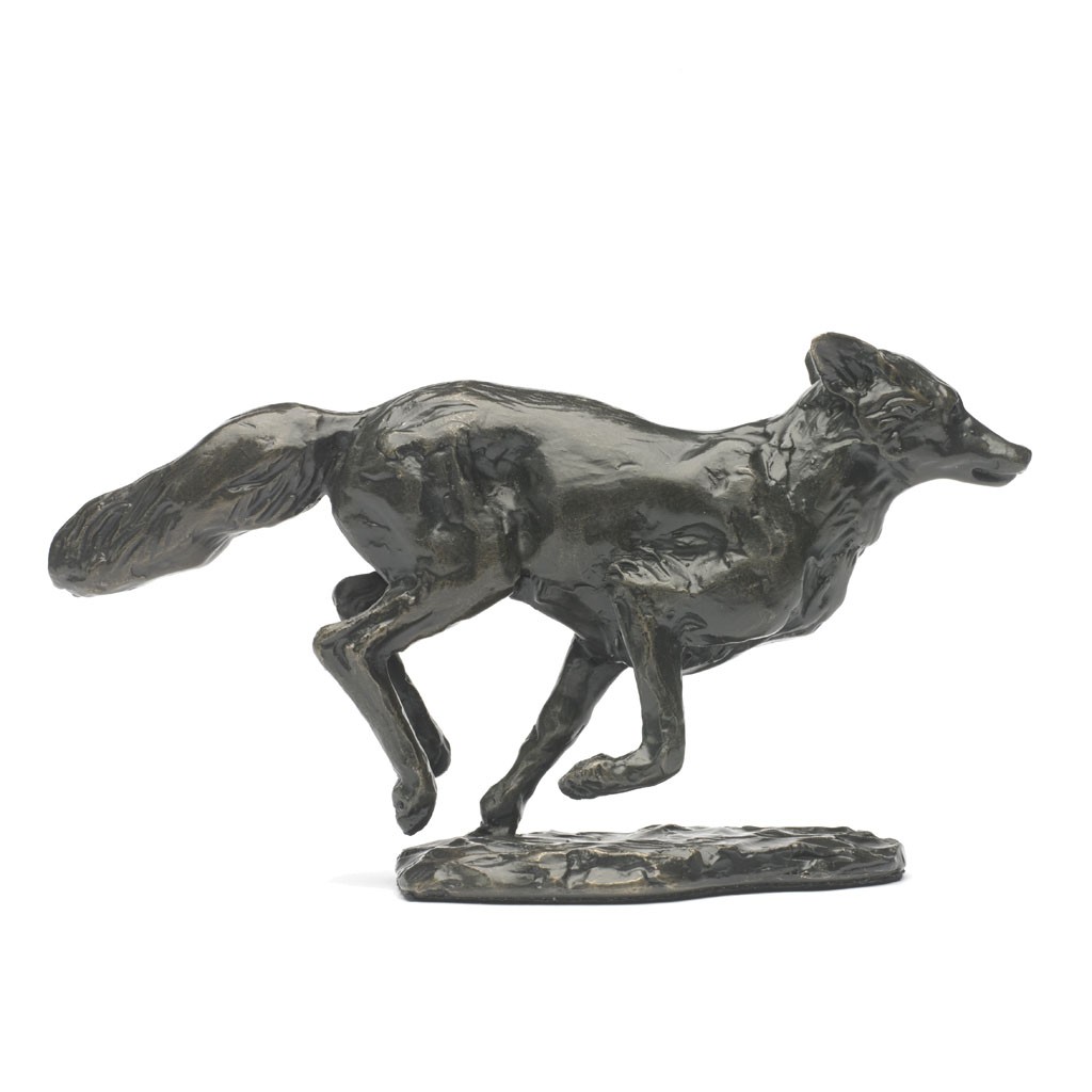 This solid bronze sculpture 'Running Fox' beautifully captures a fox in full flight as it bounds across the country side.