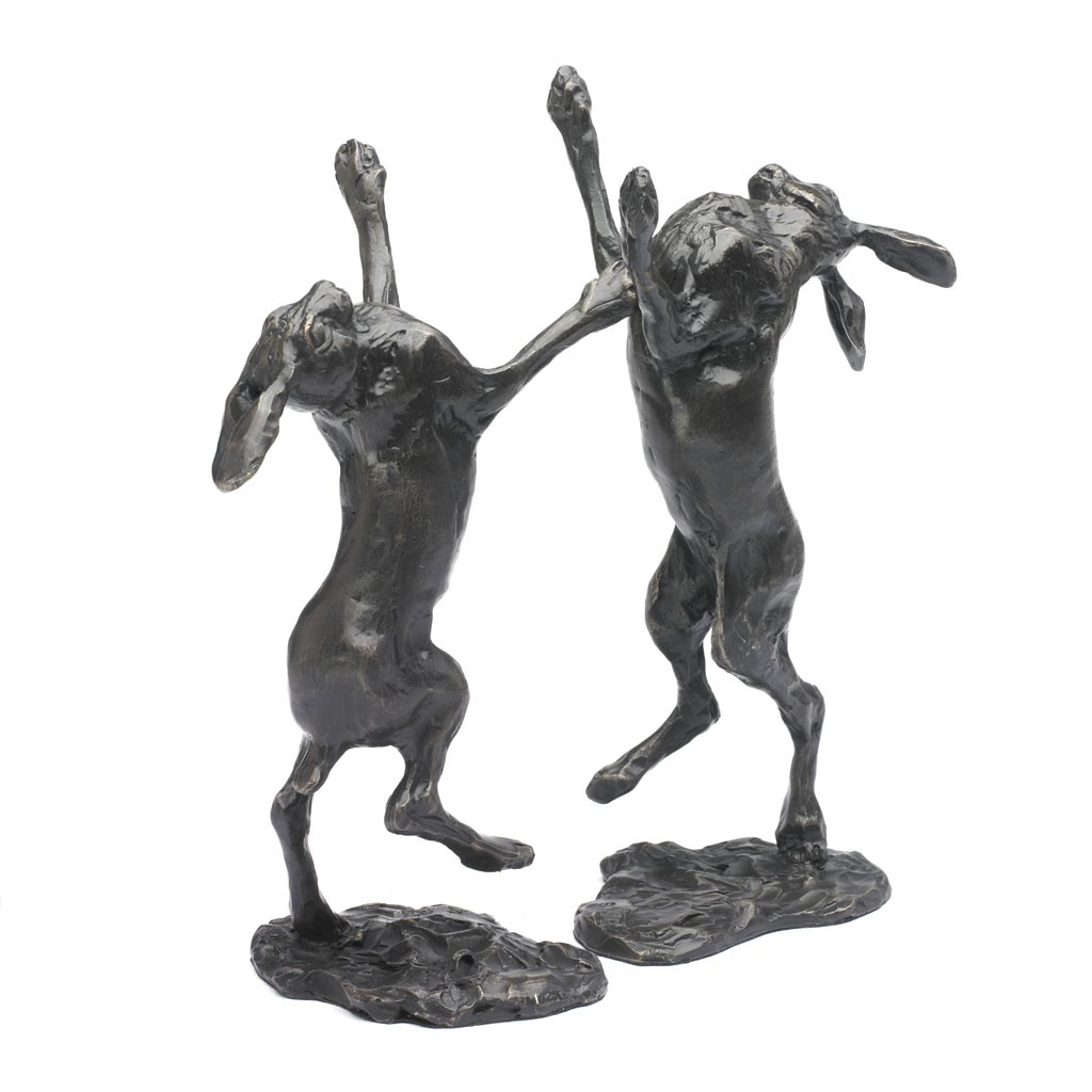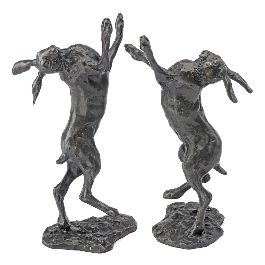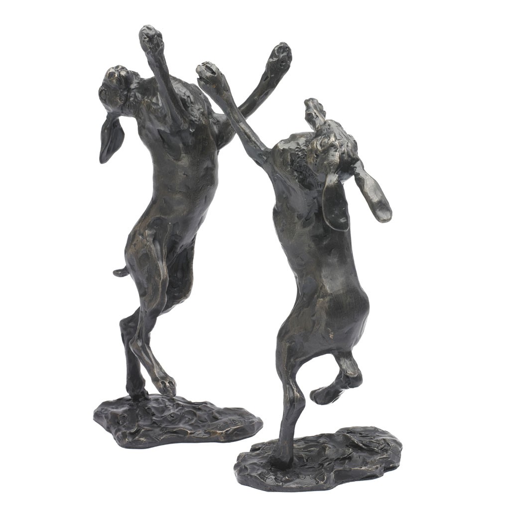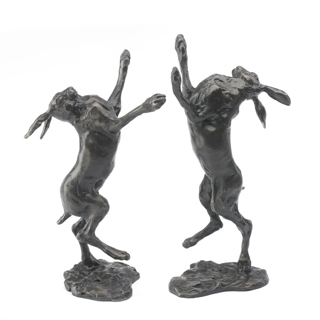 Boxing Hares II takes two weeks to cast and finish and is composed of two hares on separate bases that can be arranged as you wish.