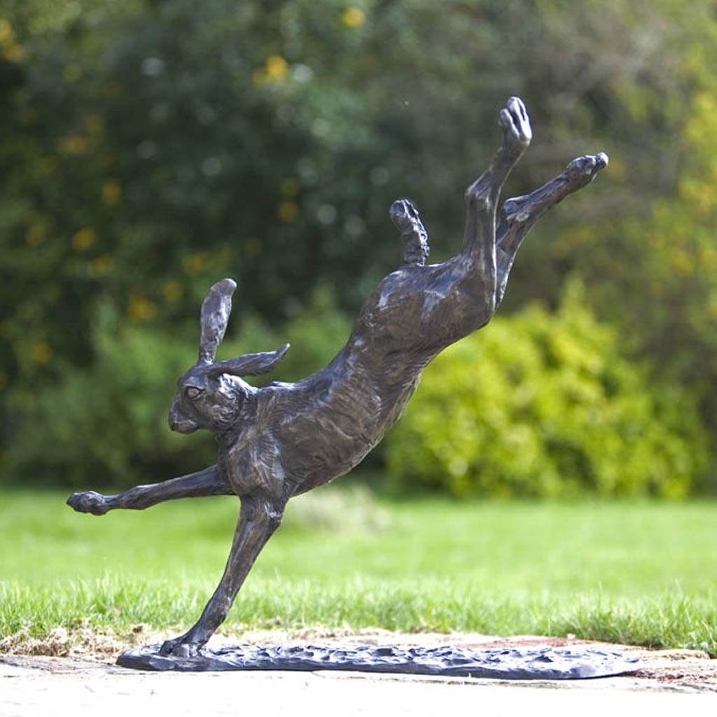 Nelson and Forbes are pleased to introduce the magnificent new life sized bronze Garden Flying Hare sculpture by Sue Maclaurin.