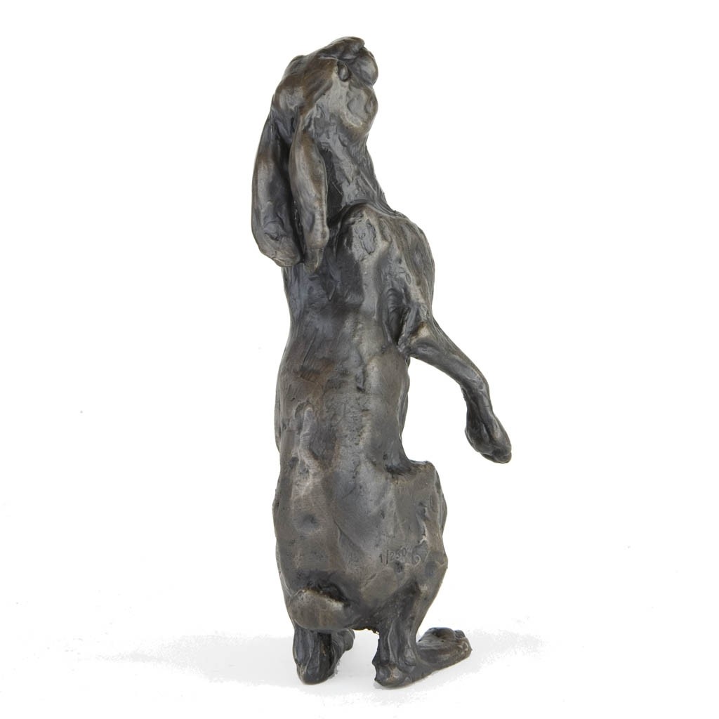 This solid bronze sculpture of a Large Moon Gazing Hare is a Nelson and Forbes foundry casting of am original sculpture by artist Sue Maclaurin.