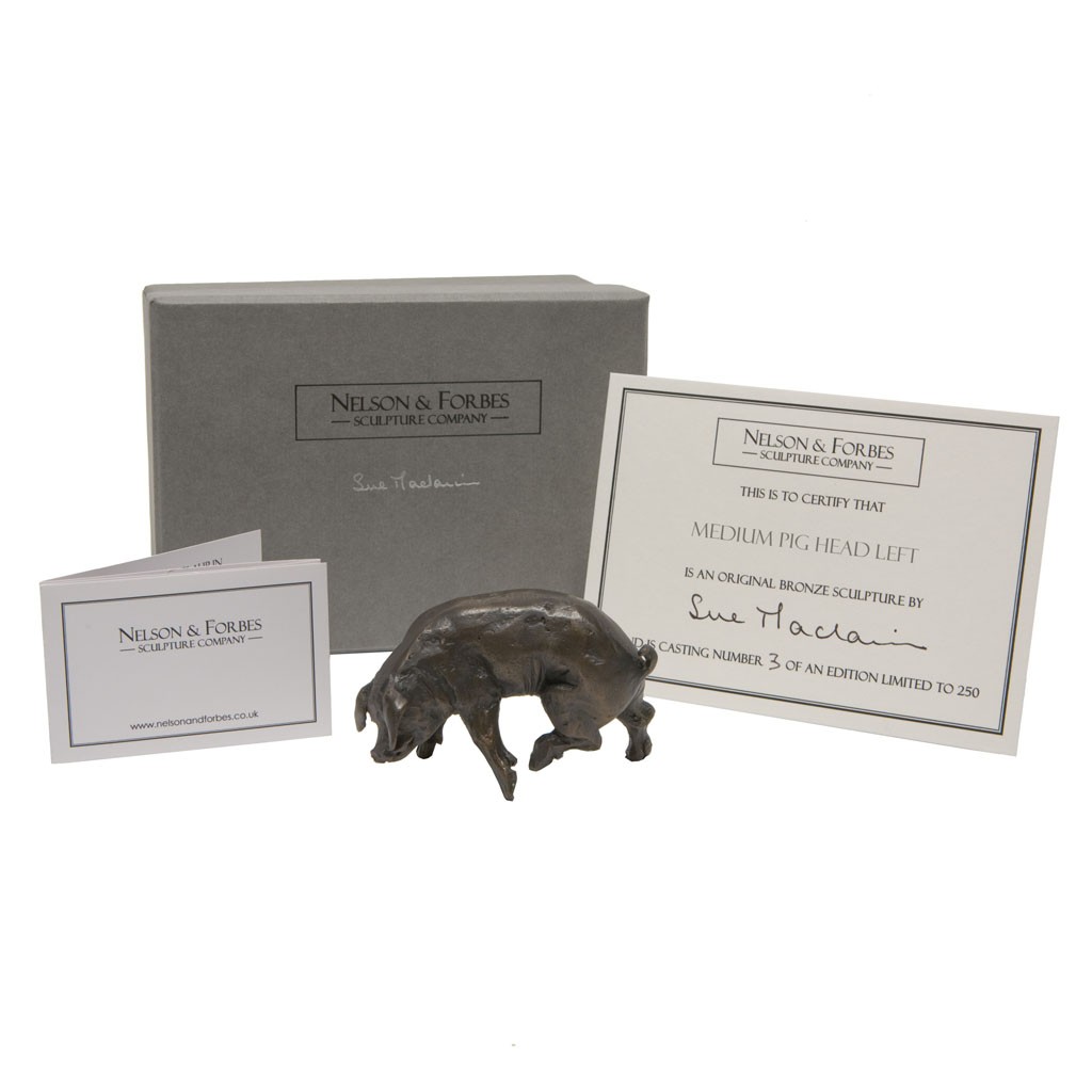 This piece complements Sue Maclaurin’s other bronze pigs to create a striking family on your table or mantelpiece.