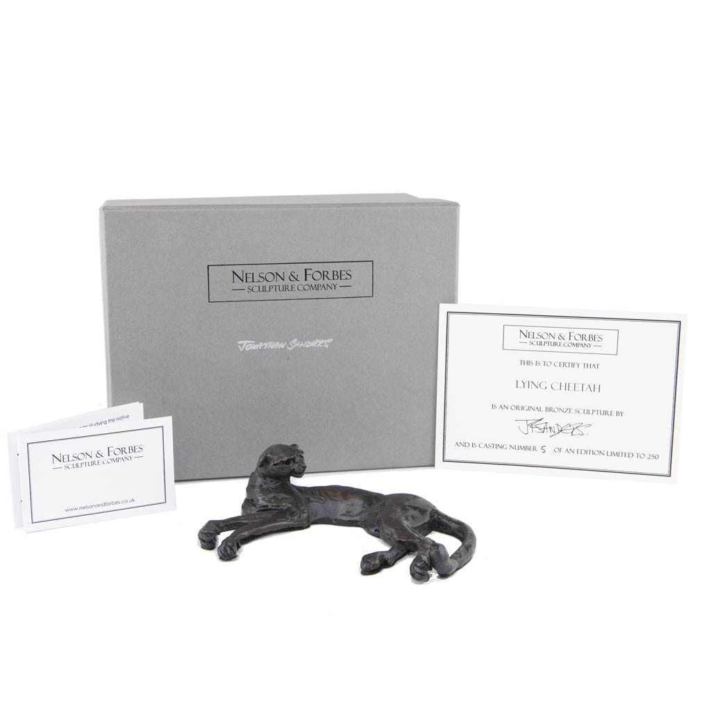 This beautiful sculpture of a 'Lying Cheetah' by Jonathan Sanders perfectly captures a cheetah relaxing in the African sun.  It was cast by hand in a British foundry by Nelson & Forbes, in a limited edition of just 250 castings.
