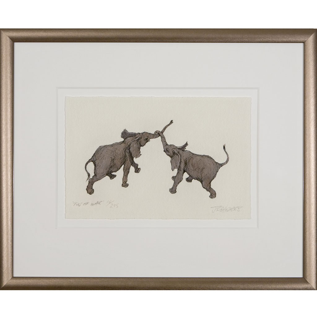 Limited Edition Elephant Print: Tug Of War by Jonathan Sanders (Framed)