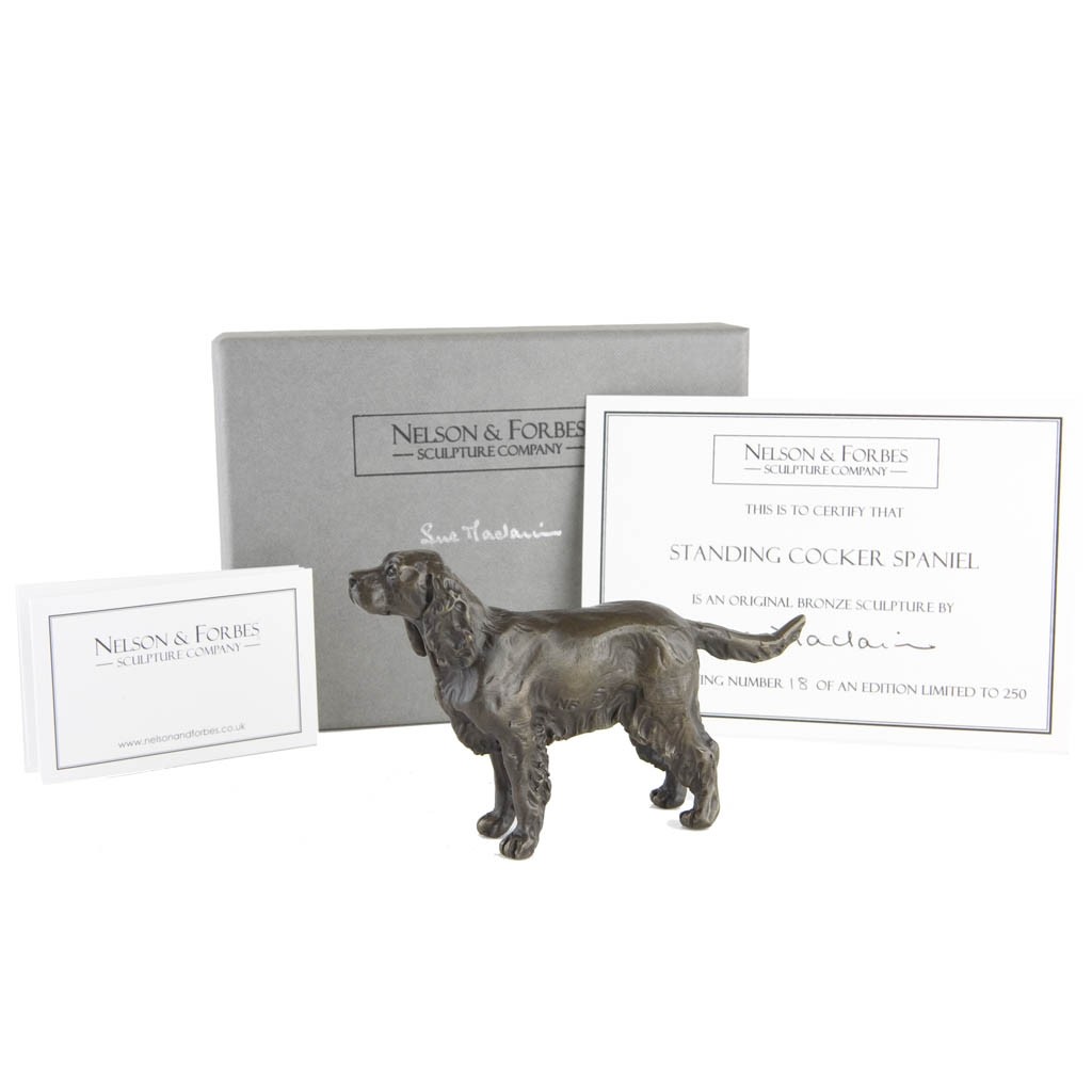 Following the runaway popularity of Sue Maclaurin’s Sitting Cocker Spaniel, we have received numerous requests from collectors for a second Cocker Spaniel sculpture to complement their first, so we are now delighted to introduce her new Standing Cocker Spaniel.