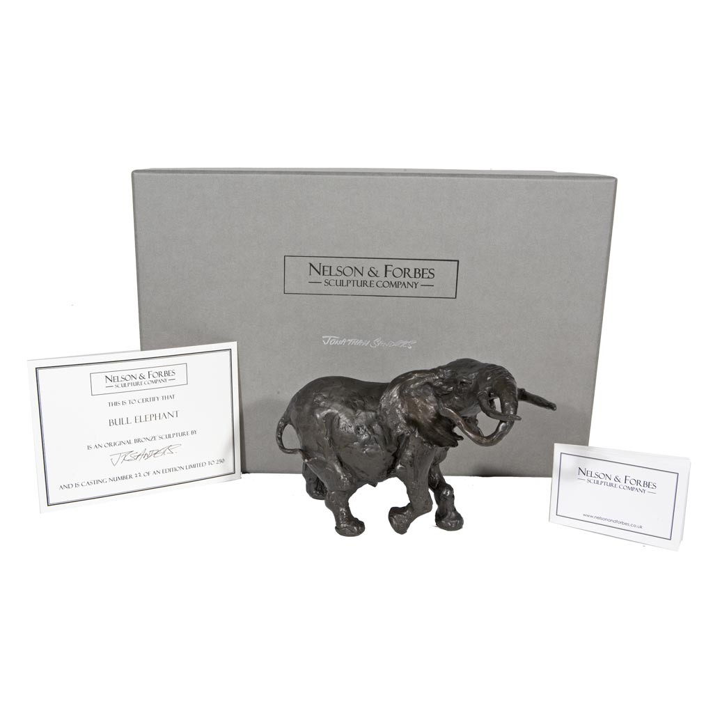 This magnificent sculpture of a Bull Elephant by Jonathan Sanders was carefully hand cast by Nelson & Forbes in a British foundry in an edition of just 250 castings. It is presented in a high quality British handmade gift box and is accompanied by a numbered certificate of authenticity, signed by the artist, Jonathan Sanders.