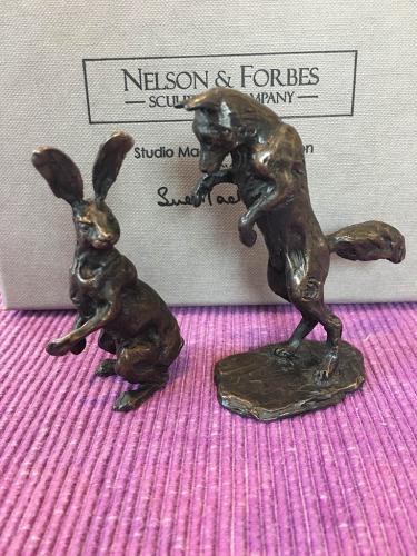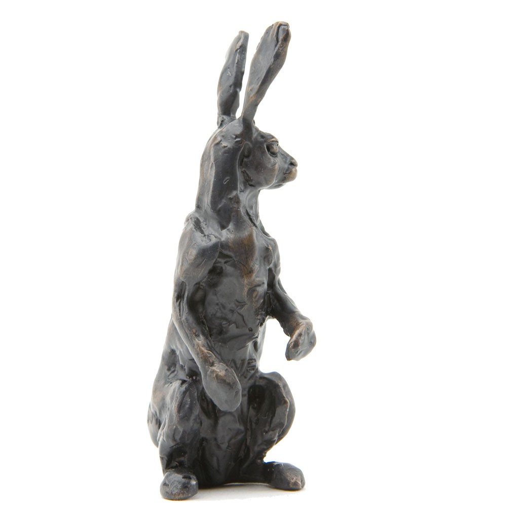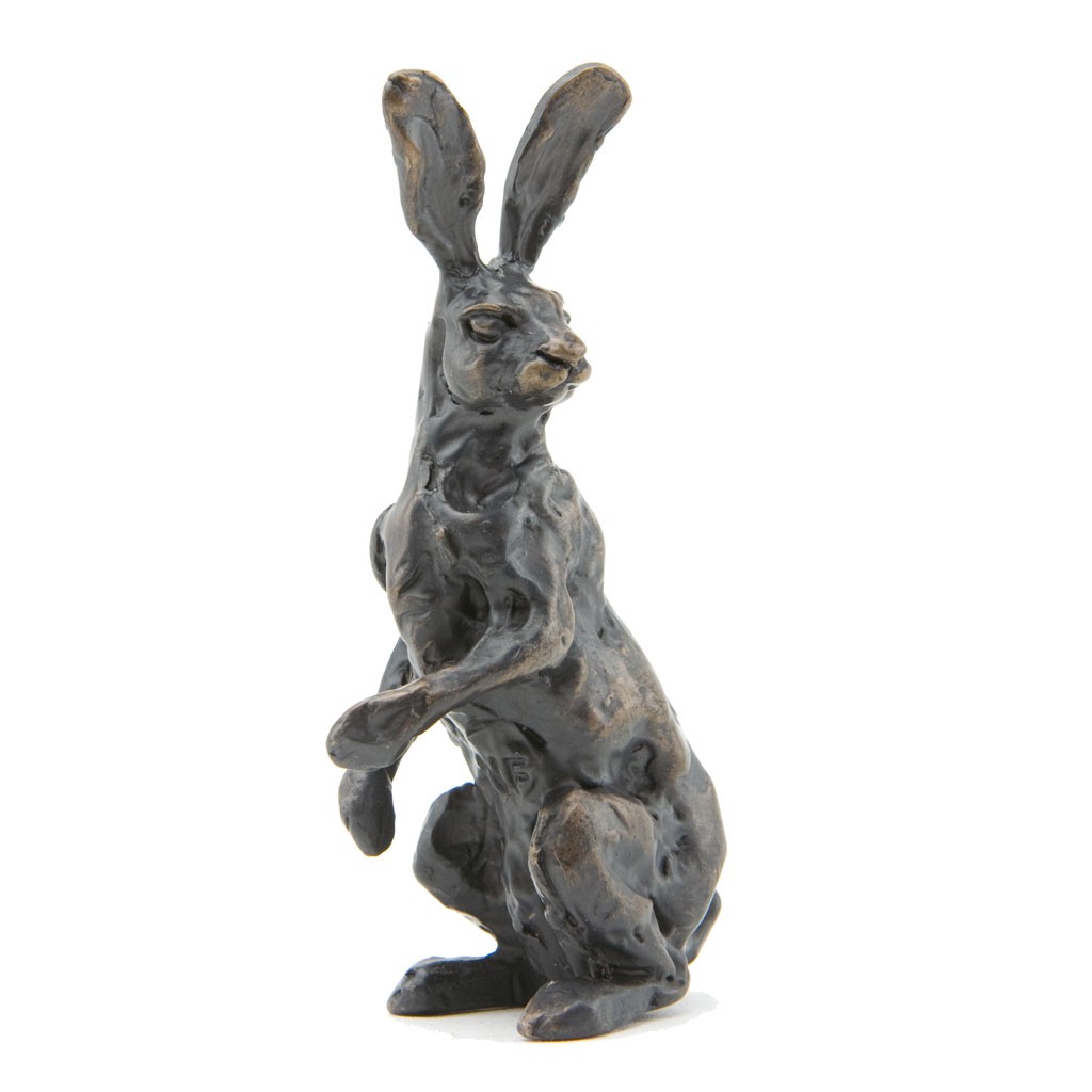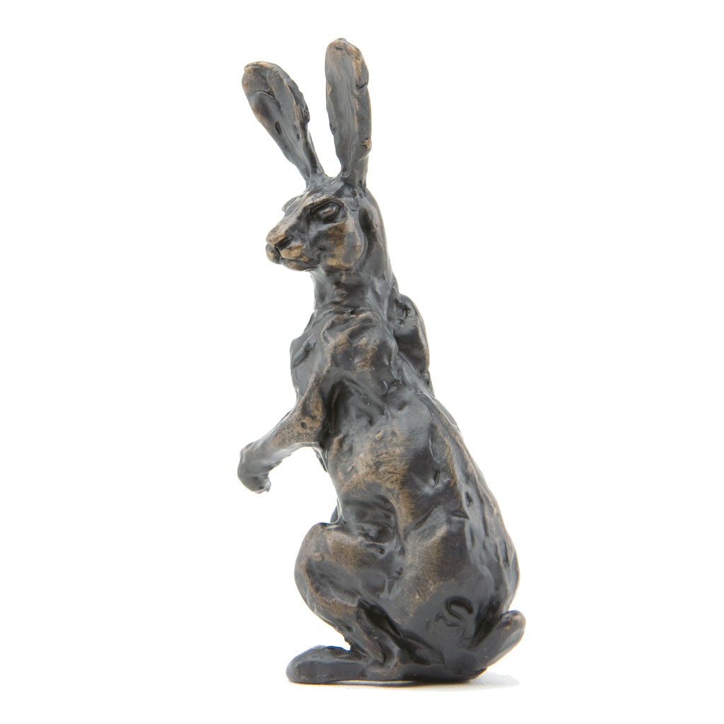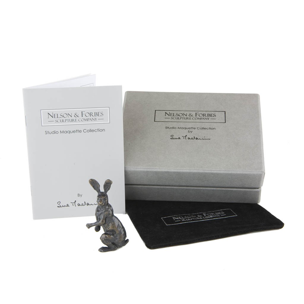 This Sue Maclaurin bronze sculpture of an Alert Hare Maquette was cast by hand in a British foundry by Nelson & Forbes, as limited edition of just 500 castings. It is part of the Nelson & Forbes ‘Studio Maquette Collection’, which was launched in 2015 following requests by collectors for miniature sculptures that would make ideal gifts.