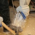 All attached rods and cups (which are now bronze) are removed by hand. At this point, any segments of a large sculpture that has been cast in sections are welded together.