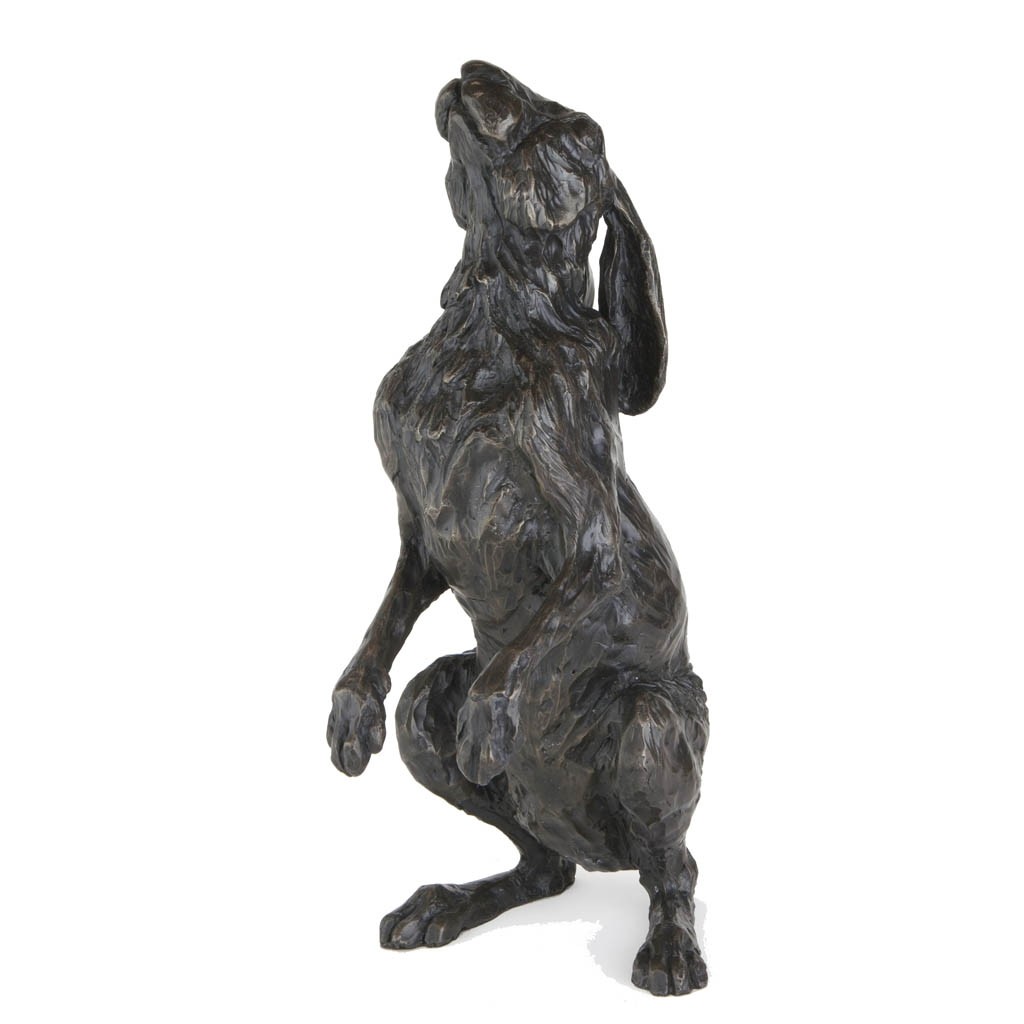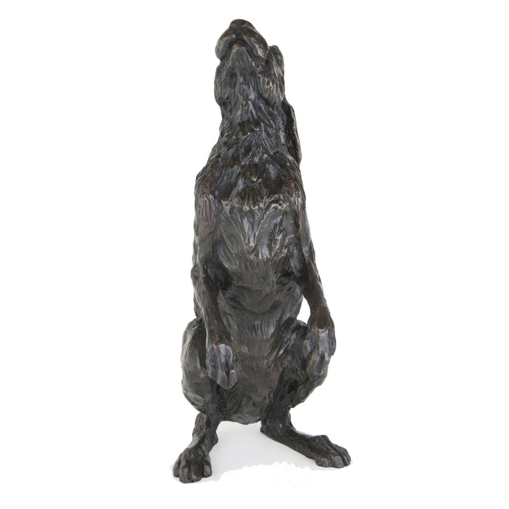 Measuring 39cm/15 ½” high, this noble sculpture captures the mystical hare in arguably its most iconic pose, gazing serenely at the moon and stars above.