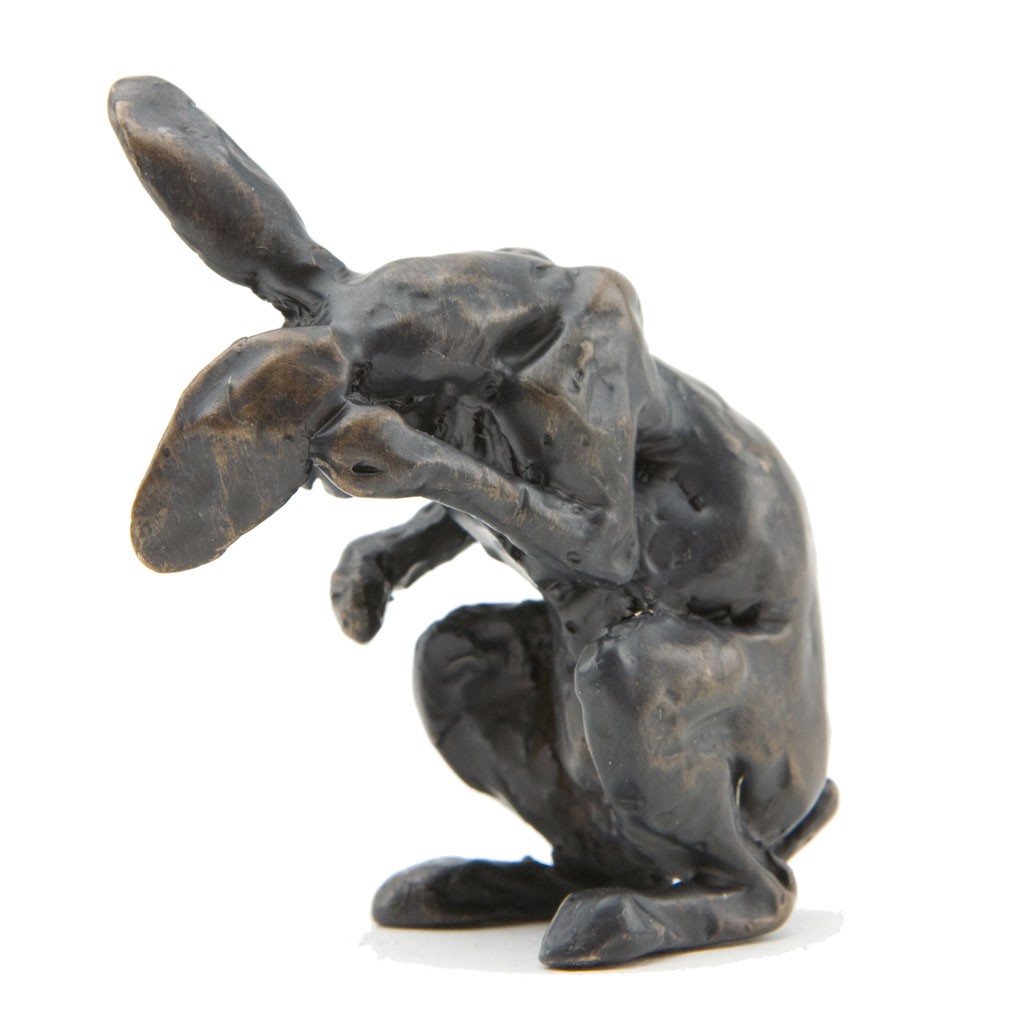 This Sue Maclaurin bronze sculpture, Hare Washing Ear Maquette was cast by hand in a British foundry by Nelson & Forbes, as limited edition of just 500 castings. It is part of the Nelson & Forbes ‘Studio Maquette Collection’, which was launched in 2015 following requests by collectors for miniature sculptures that would make ideal gifts.
