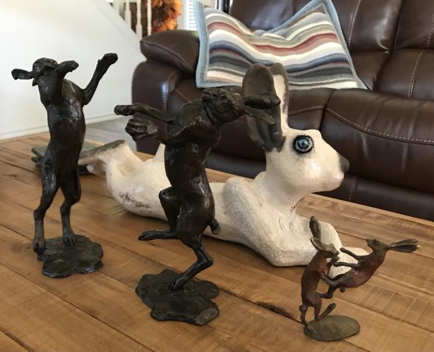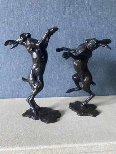 These hares take two weeks to cast and finish and each sculpture is composed of two hares on separate bases that can be arranged as you wish.