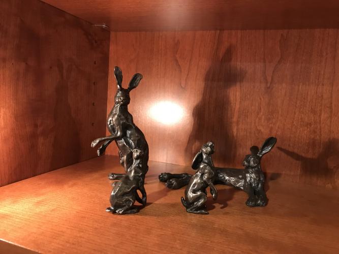 This piece complements Sue Maclaurin’s bronze hares including Flying Hare II, Alert Hare II, Hare Washing Ear, Lying Hare, Rolling Hare, Running Hare, Moon Gazing Hare, Boxing Hares and Tumbling Hares.