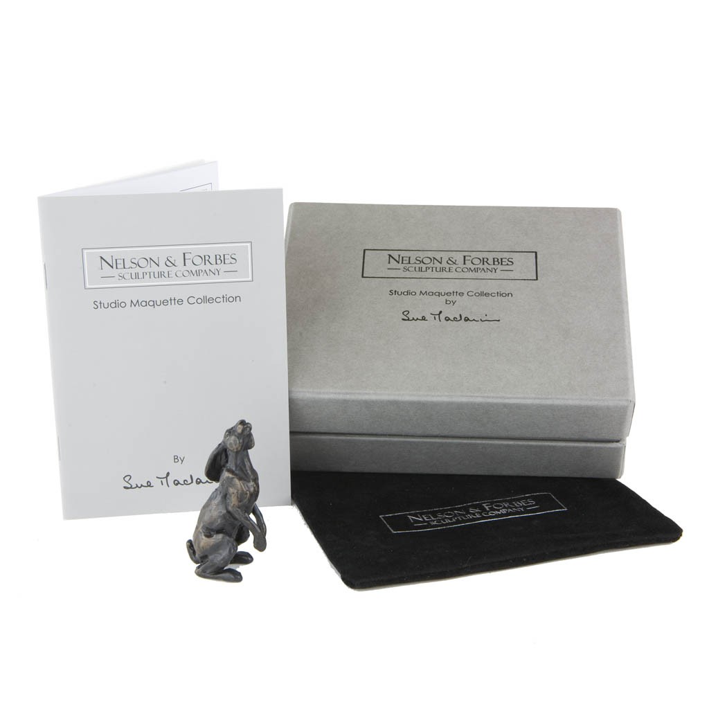 This Sue Maclaurin bronze sculpture of a Moon Gazing Hare Maquette was cast by hand in a British foundry by Nelson & Forbes, as limited edition of just 500 castings. It is part of the Nelson & Forbes ‘Studio Maquette Collection’, which was launched in 2015 following requests by collectors for miniature sculptures that would make ideal gifts.