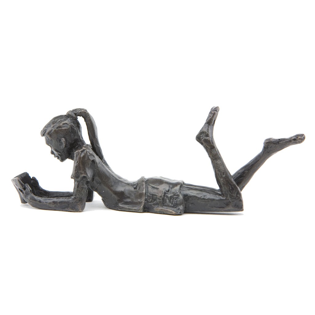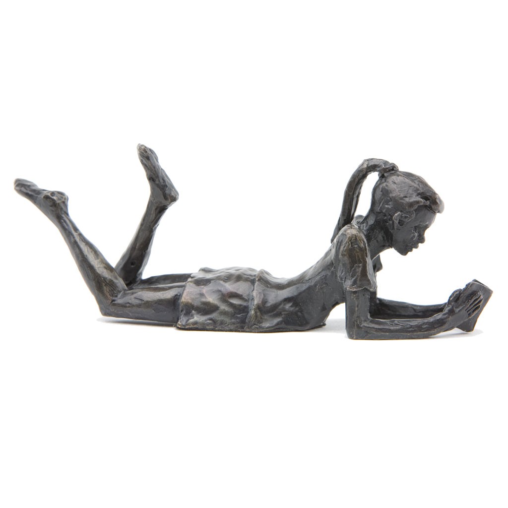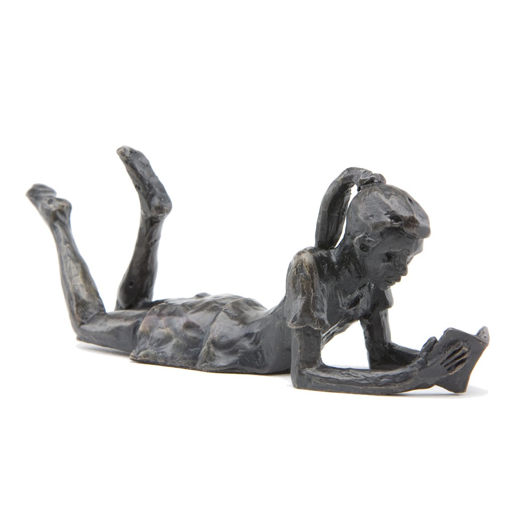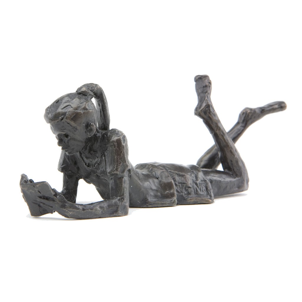Depicting a delightfully carefree child reading a book, this beautiful sculpture is presented in a high quality English hand made gift box and is accompanied by a numbered booklet of information, signed by the artist, Jonathan Sanders. This booklet is your guarantee that this is an original foundry casting of Jonathan Sanders's work that he has personally approved.