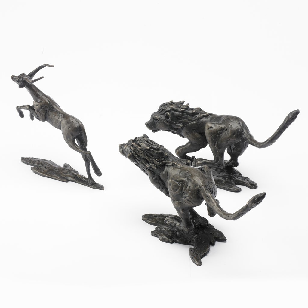 This piece is the same scale as Jonathan Sanders's Running LionHunting Lion and Flying Cheetah, so they make a dynamic set when displayed together.