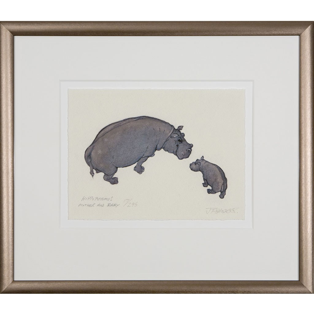 - Limited Edition Hippo Print: Hippopotamus Mother and Baby by Jonathan Sanders (Framed)