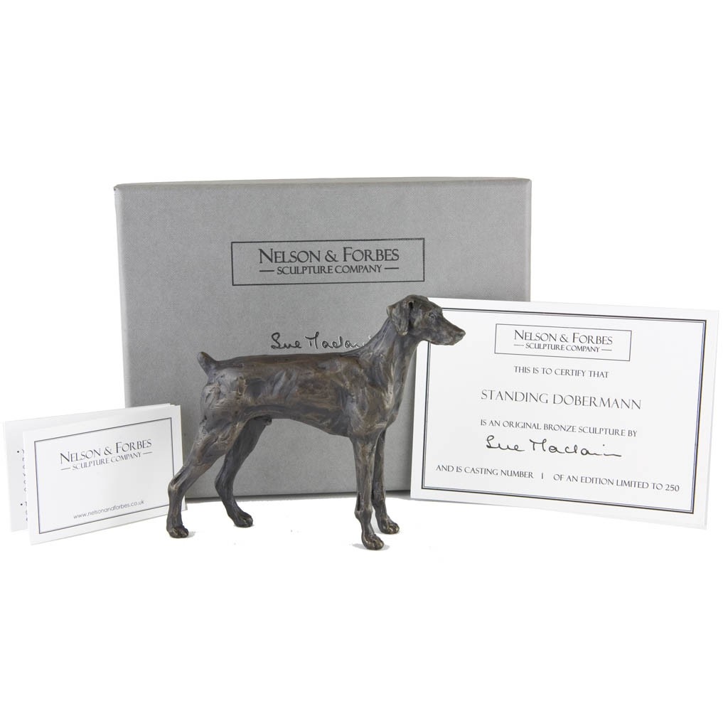 Bronze Dog Sculpture: Standing Dobermann (Docked) by Sue Maclaurin