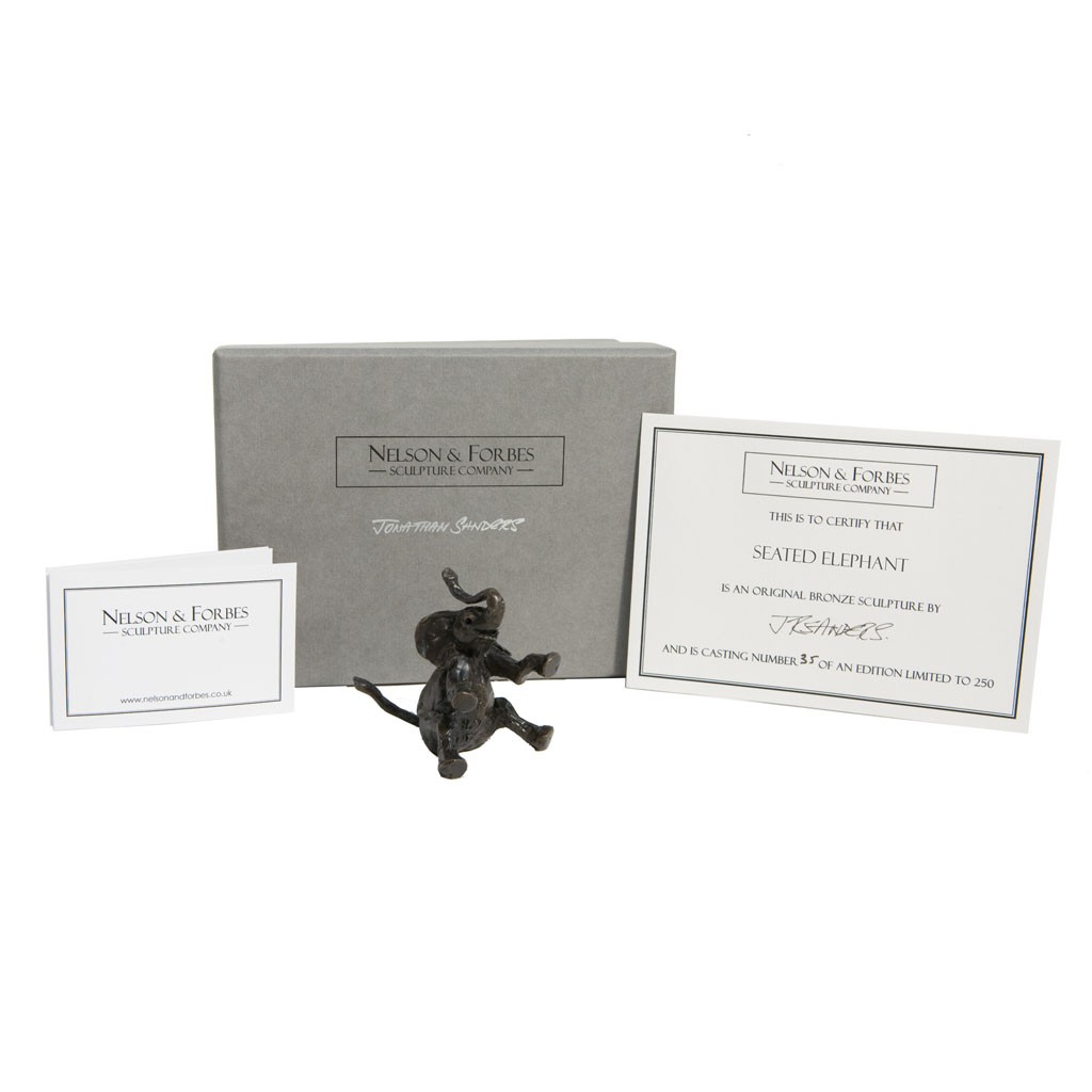 This bronze sculpture of a Seated Elephant by Jonathan Sanders was carefully hand cast in a British foundry by Nelson & Forbes, in an edition of just 250 castings.