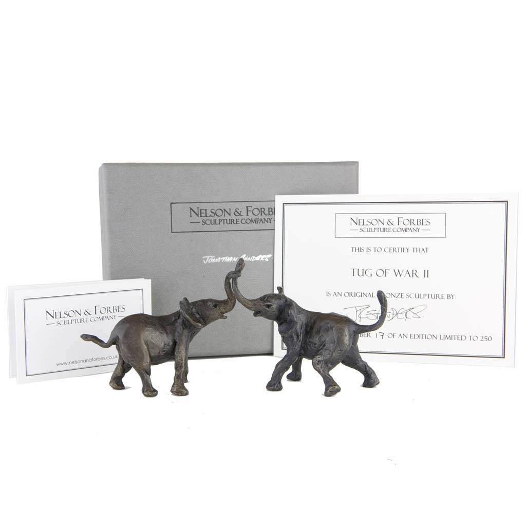 Bronze Elephant Sculpture: Tug Of War II by Jonathan Sanders