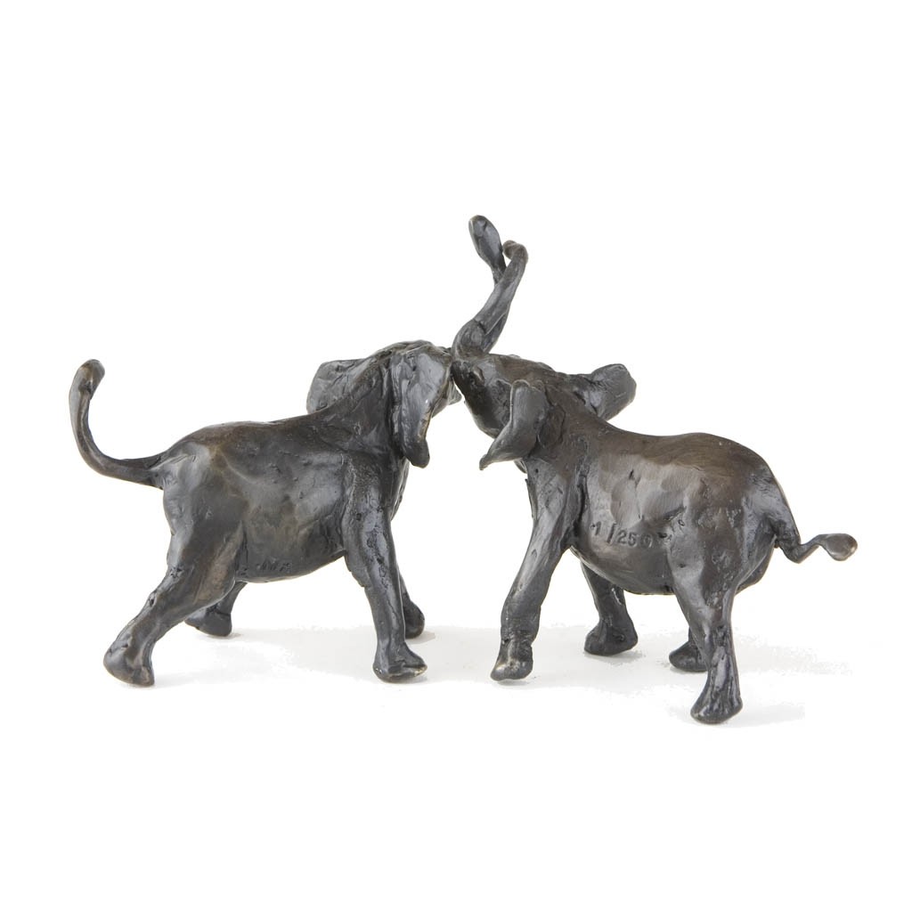 Tug Of War II is a delightful addition to Jonathan Sanders’s elephant herd and is scaled to fit with his Bull Elephant,  Elephant Mother and Baby II, Seated Elephant, Playing Elephant, One Plus One and Playing Elephants.