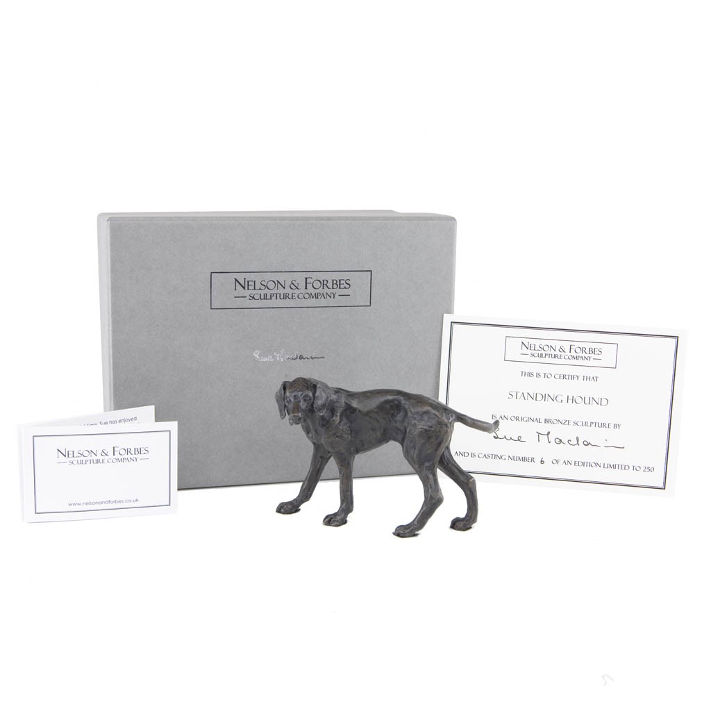 The beautiful bronze Standing Hound is a solid bronze casting of an original sculpture by Sue Maclaurin.
