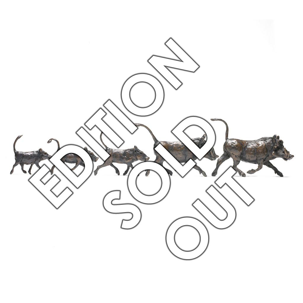 Jonathan has spent many years studying the flora and fauna of Africa up close and he was particularly keen to create a family of warthogs.  "They just seem to own the track when they trot down it" he says, "I have endeavoured to capture that self contained assuredness whilst maintaining the fondness I feel when I watch them."
